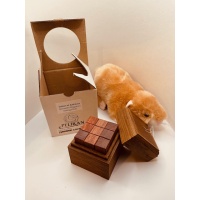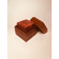 “Do you like the Soma cube and its associated challenges? If so then you will love the Edition of Additions! Alexander has branched out into a different genre of puzzles to his usual packing or interlocking puzzles and has created something perfect for new and old puzzlers alike. This is absolutely stunning made with Bubinga pieces and an Oak box which has been beautifully made (taking the lid off requires breaking a vacuum seal!). The pieces are assembled inside the box as a 3x3x3 cube and having taken the pieces out for my photo, I realised that I couldn’t put them back inside again! Unlike the Soma cube which has 240 cubic assemblies, this has just four – Aargh! To my shame it took me almost a whole afternoon to put it back in the box. Having done this then the wonderful puzzle comes with another 12 shapes to attempt to assemble. None of them are easy as most have between 1 and 5 possible assemblies (2 have more than 10 but I still struggled with them). If shape forming puzzles are your thing then this is a must – if you own and enjoy the Soma cube then you owe it to yourself to add one of these to your collection. To me, any puzzle that comes in a beautifully made box is a must have!”