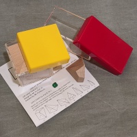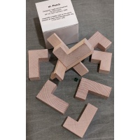 Maple, 7 pieces. Assemble a cube that is self supporting on the provided perch.