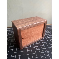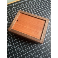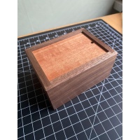 The idea for the Escalating Box came from a couple of different mechanisms I'd been fooling around with. I was going to release them as two fairly simple separate boxes but realized that I could put them both into one trickier box. I made a poll on our Facebook Group and everyone overwhelmingly voted for a single, more difficult box. Done and done! I got to the drawing board and realized not only could I put both mechanisms together, but that they would interact making the sum more difficult than the parts. Finally, just for fun, I added a third tricky lock before the final release move. Be careful what you ask for, facebook friends! This is a fun solve, about medium in difficulty, and one that rewards progressive solving and manipulative experimentation. Construction is beautifully realized with a Walnut box and Quartersawn Makore lid. 50 total copies made for sale, each signed and dated. Escalating Box is shipped unsolved (assembled). |