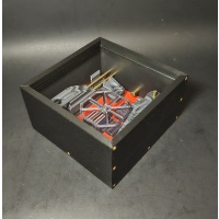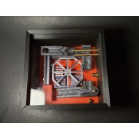 Made of PLA, brass rods/screws/ball, and acrylic top.