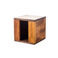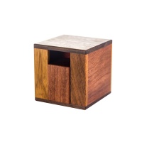 “Yet another incredible puzzle design from the amazing mind of Dr Volker Latussek! I just don’t understand how his brain works. Here is another packing puzzle dedicated to the memory of the much missed Eric Fuller. It consist of 3 Cuboids and one cube to be inserted into one of Volker’s characteristic partially enclosed boxes. The difference here is that the entry into the box is a good bit smaller than usual and most of the blocks can only be inserted in 1 or 2 orientations and once more than one is inside there is almost no wiggle room to move them about. The manufacture is absolutely perfect with sheer millimetre perfection in size and smooth finish. The woods are Padauk, Bubinga, Jatoba and American Walnut. My usual random inserting things got me absolutely nowhere as they block up very quickly (almost immediately!) and in the end I had to actually think©! It took a little arrangement outside the box to find a vague idea of how they could go inside and then working out a possible insertion order. Straight away I got stuck after just 2 pieces were inside before noticing that trying something that Volker had done with another earlier puzzle would open up a bit more space. After that there were three pieces inside and I could see how the 4th should lie but it wouldn’t fit. I needed a rather fancy move to do it and boy! was it difficult. After a lot of dexterity and shaking the bloody thing around, I had a very satisfying click and a couple of sliding moves later it was all inside. HOORAY! I cannot for the life of me reverse the sequence but I haven’t had much time to play. I am looking forward to several more frustrating days of rattling about. This is a MUST HAVE puzzle!”