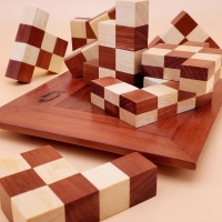 goals: assemble a 4x4x4 cube on one side, and an 8x8 checkerboard on the other side.