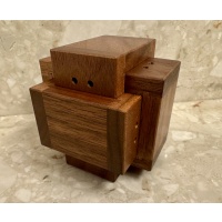 This box was developed for the Christmas present for Karakuri Members 2013. The basic mechanism is similar to the "Expansion Series", but the movementis a little different. The new movement was added as all three parts move at the same time. This work will be the last of the "Expansion Series".