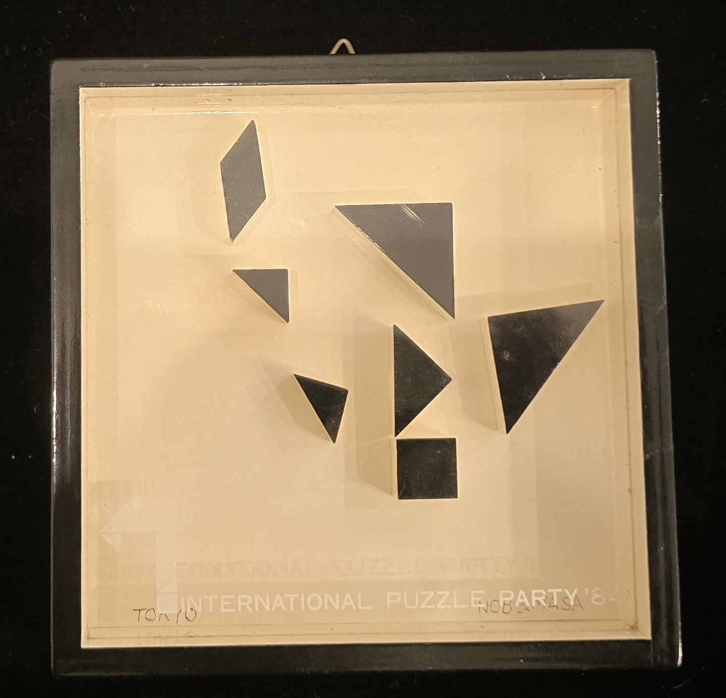 Condition: Excellent vintage condition. The pieces and frame are beautifully preserved, and the original stamped text on the frame is crisp and highly legible. Features a built-in hole on the back of the frame so the solved puzzle can be hung on the wall as a plaque.