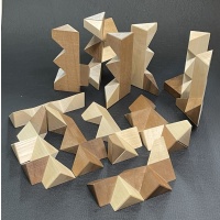 The puzzle has a diagonal star construction but the normal pieces are split into two, creating a more complex dexterity challenge.