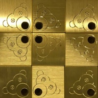 Each monkey comprises of a linished brass head and bum with a black Aluminium Oxide blasted, acid etched, polyester powder coated aluminium body.