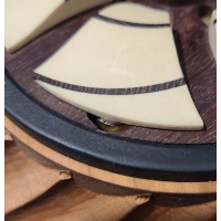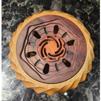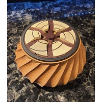 The Fibonacci puzzle is based on the Fibonacci sequence found in nature. The goal of this puzzle is to open the box. I uncovered a satisfying coincidence in nature that made the basis for the main Fibonacci mechanism. When I figured out a puzzle like this could exist I knew I would eventually have to make it, and I'm very glad I did. This puzzle works very similar to the Pi puzzlebox I designed seven years ago although I'd like to think our execution is a little better this time around. The inlay spirals on top of the puzzle are Fibonacci spirals, otherwise known as golden spirals.