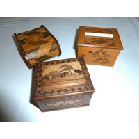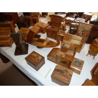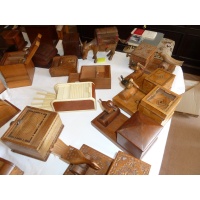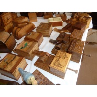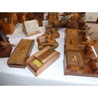 Laurie would have been happy to know that they are remaining in the puzzle community. Gondolier goes round while ballerina spins and music plays. Donkey poops cigarette. Mad birds and dogs pickup the cigarettes. Etcetera. Some challenges how to put cigarettes in the box in the first place. Some you will only see in the Karakuri Museum in Hakone.