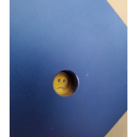 When you start the puzzle you can see into the hole in the bottom of the box that the gold anodised metal rod has a sad face on the end. You’ll have done the puzzle when you’ve removed the rod and put it back so that you can look into the bottom of the box and see a smiley face on the rod.