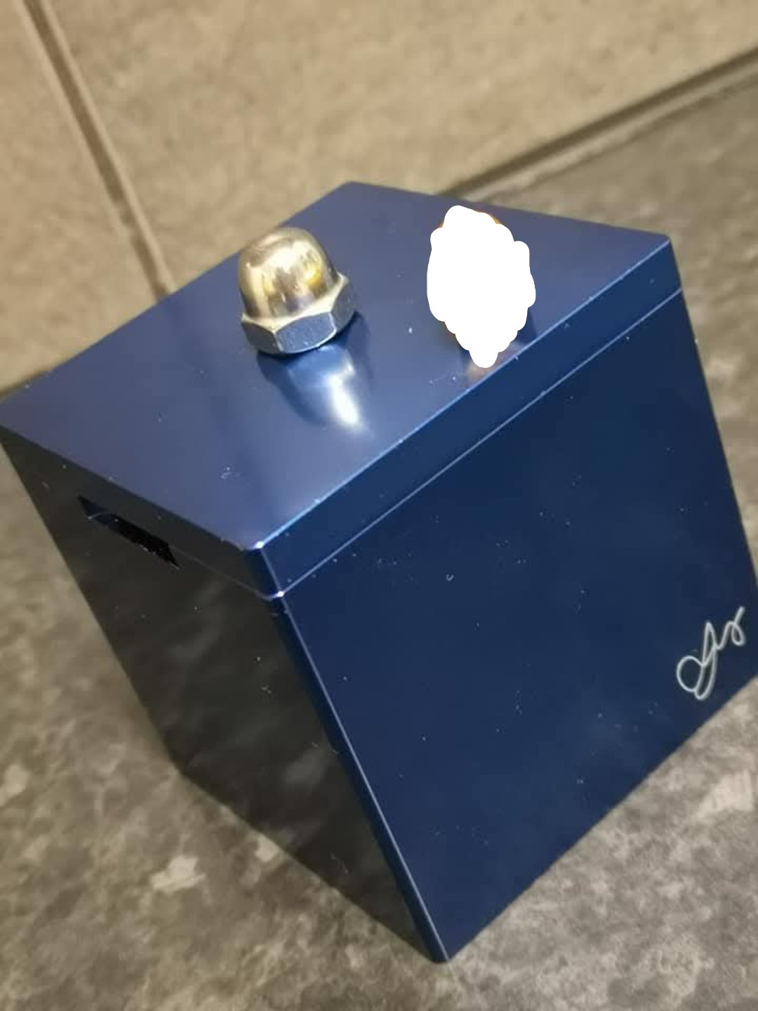 This is a nice little puzzle, made from anodised aluminium, heavy and very well made. The goal is to open the box and then find your reason to smile!