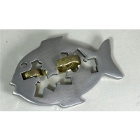 We sold this puzzle on our website back in 2008 with the name “Fish on a Hook” made by Puzzle Makers International made in Taiwan.