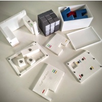 This is a Soma based 3D packing puzzle. You can rearrange the box into 4 different puzzles. #1 and #2 are in the medium-easy side, #3 and #4 are deep in the dark side!