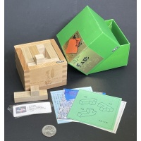 "For your own SAKE (1-2)" is the second in a series of box packing puzzles. Nob Yoshigahara designed this wonderful series of sake cup puzzles, which was faithfully produced by Puzzland Hikimi many years ago.