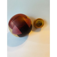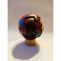 “This is called the 'Four Hands Puzzle' because even after you have figured out how the pieces should go together, it helps if you have four hands to complete the assembly. This is the most difficult puzzle in the series, and my personal favorite. Given the complexity of both the relative motion and the geometry of the pieces, I believe that this is one of the most complex coordinate motion puzzles ever made. The puzzle is difficult to fabricate because all the interaction between the pieces requires that very tight tolerances be maintained. The craftsmen at Pelikan did a great job as usual, and they created a really really nice looking puzzle with beautiful contrasting woods. Enjoy.”