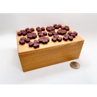 Ordinarily I'd include Karakuri's product description of the puzzle, but it is a bit spoilery. Please click through on the following link if you are ok with this: Four-leaf clover puzzle description. The puzzle is based on an idea by Miharu Suzuki and was hand-crafted by Akio Kamei and Kyoko Hoshino.