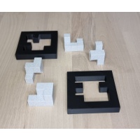 This is a Packing Puzzle slightly different than usual. You have four pieces to fit into a frame, but this time the frame is "undefined"!