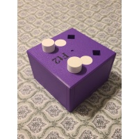Free the Two has the same theme as the rest of the series with its purple color, moving white parts and multiple coin slots around the puzzle box. That is where the similarities end. This puzzle is much bigger. It measures 12.5 cm x 12.5 cm x 8 cm and weighs in at over 1.5 pounds. It takes about 25 print hours and has over 80 non-PLA parts.