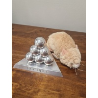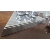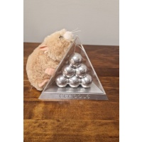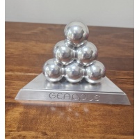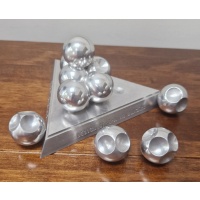 The entire puzzle is created from aluminium, with the objective to build a tetrahedron on the base as the pieces all perfectly fit together.