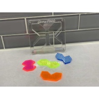 Goal: Fit all 4 of the "Gems" into the frame. When solved the pieces will be fully inside of  the opening and no force is needed. If you are using force then it is not the solution. Rotations are allowed.