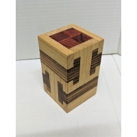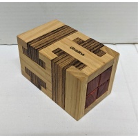 This is fun little Framed Burr with nice dancing around of the pieces. I especially like some of the moves that Zebra Wood pieces make. Fun to do as a disassembly and even more fun to do as an assembly. Not too difficult to require Burr tools.
