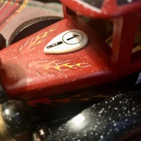 The truck is covered in tiny advertisement stickers pulled from three classic race-car model kits, the kind that once filled a young boy’s afternoons with imagination and glue-covered fingers. Today those kits are disappearing, and the culture around them is too. By covering the truck in decals, the design also makes a quiet commentary: even nostalgia, even childhood, even dreams have been monetized. These bright little logos are both playful and symbolic — a reminder of how commercialization finds its way into everything.