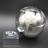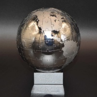 Metal Globe puzzle featuring contrasting brushed and polished finished pieces, New In Box with original packaging. Brand new and never played, comes with matching stand to make a great showpiece with any puzzle collection in the World!