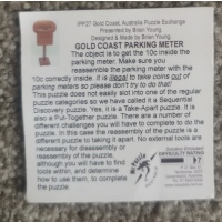 This is the gold coast parking meter designed by Brian young aka Mr puzzle for ipp 27 in 2007 only 200 was made according to the listing on Mr puzzle website.