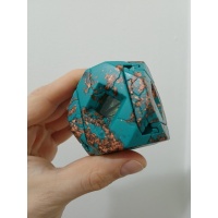 This variant is Turquoise which means the pieces come in a lovely rich blue color with veins of copper throughout and a pale frosty core. It feels like a treasure found in the icy depths of an arctic winterland!