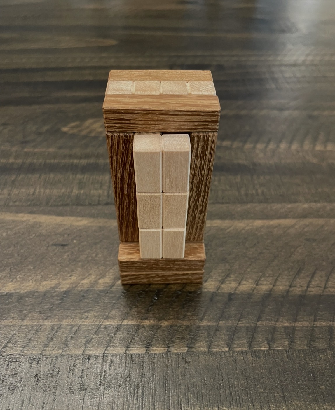 Designed by Lucie Pauwels and crafted by Pelikan.Goal: Pack all the pieces on to the frame so that no piece can slide off when tilted.Mixed WoodsPerfect Condition. Comes from a smoke free home and properly stored.Will package with a collector in mind for shipping.*Buyer pays shipping costs and will be added at end of auction. I accept Friends and Family and Goods and Services payments. I understand the importance of G&S with buyer protection and some buyers are not able to utilize F&F.