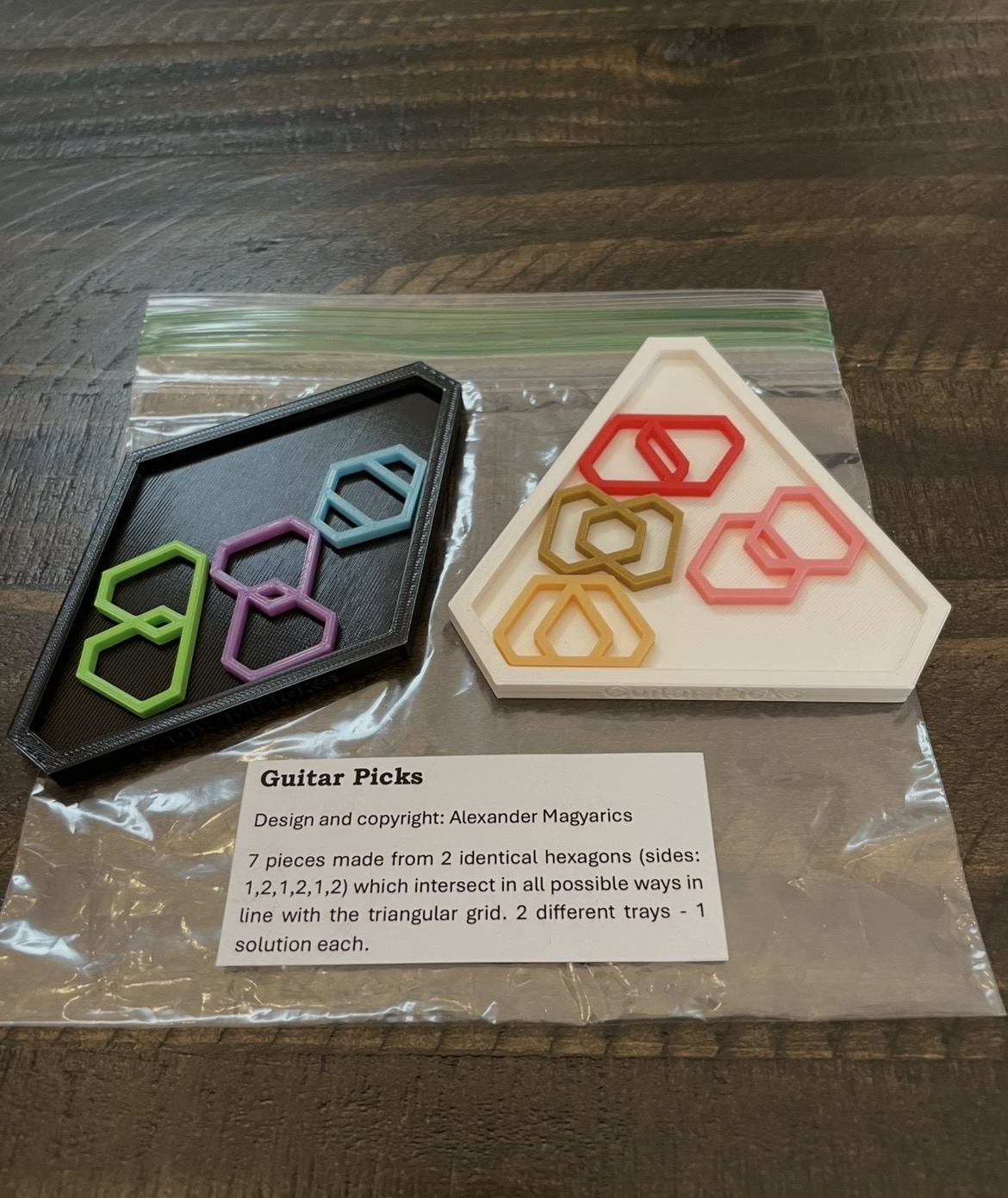 Goal: Pack all 7 pieces into each tray. 1 solution each.