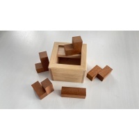 Objective. Simply pack the five pieces into the box so that the lid moves freely. With only two layers and one slider, you'd think this puzzle was easy. Far from it! Whilst there are fewer pieces, the smaller opening necessitates rotational moves which greatly complicate assembly.