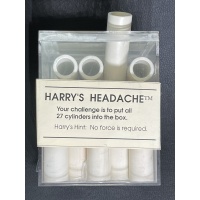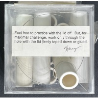 This was the exchange puzzle of Harry Nelson at IPP14 in 1994 in Seattle, Washington.  Your challenge is to put all 27 cylinders into the box.  For the "maximal challenge," you may work ONLY through the small hole in the lid.