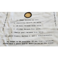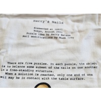 This is a puzzle and dexterity challenge in one. The cloth has the rules, challenges, keeps the nails in a safe place, and is used to protect your table...