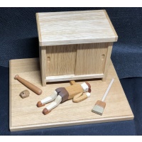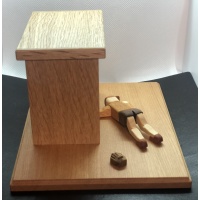 This Karakuri Idea Contest Winner was handcrafted out of Oak and Cherry by Yoh Kakuda and Yasuaki Kikuchi based on an original idea by Masaki Ohnishi.