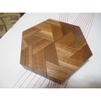 Hex Trivet, design by William Waite and made by Interlocking Puzzles/Wayne Daniel. Despite its appearance, the Hex Trivet is NOT a coordinate motion puzzle, but consists of 6 interlocking pieces made up of two layers. The puzzle fits together smoothly and accurately, and the finish is quite nice. I bought this in 2004, from Puzzlemist, I think.