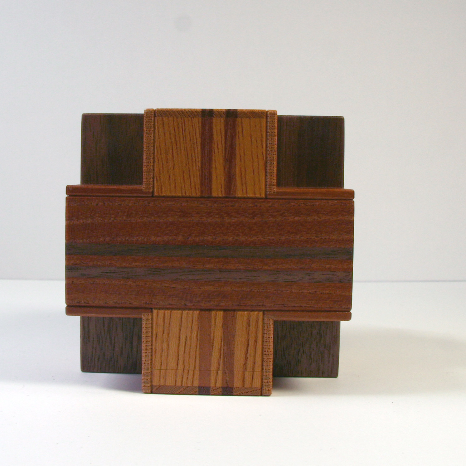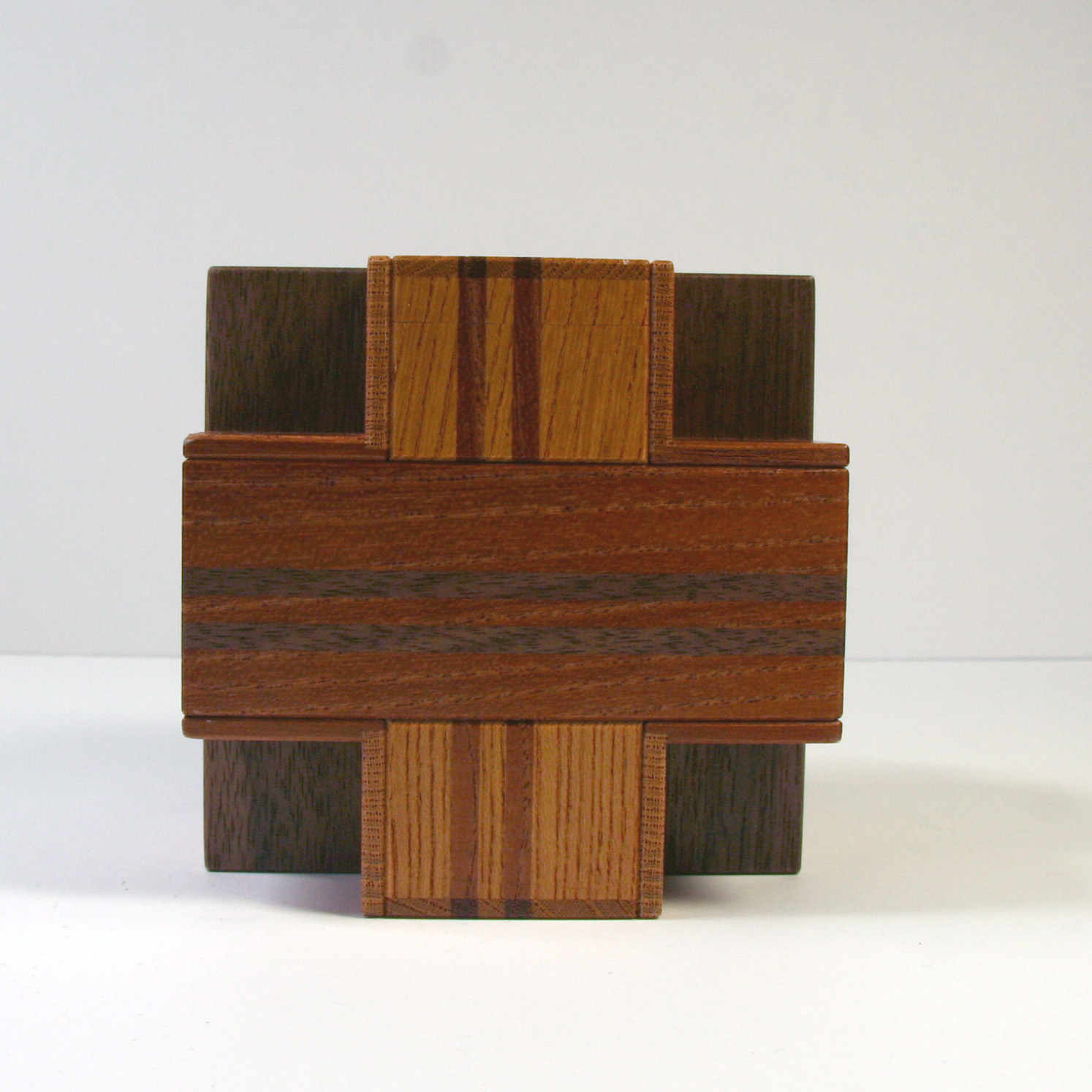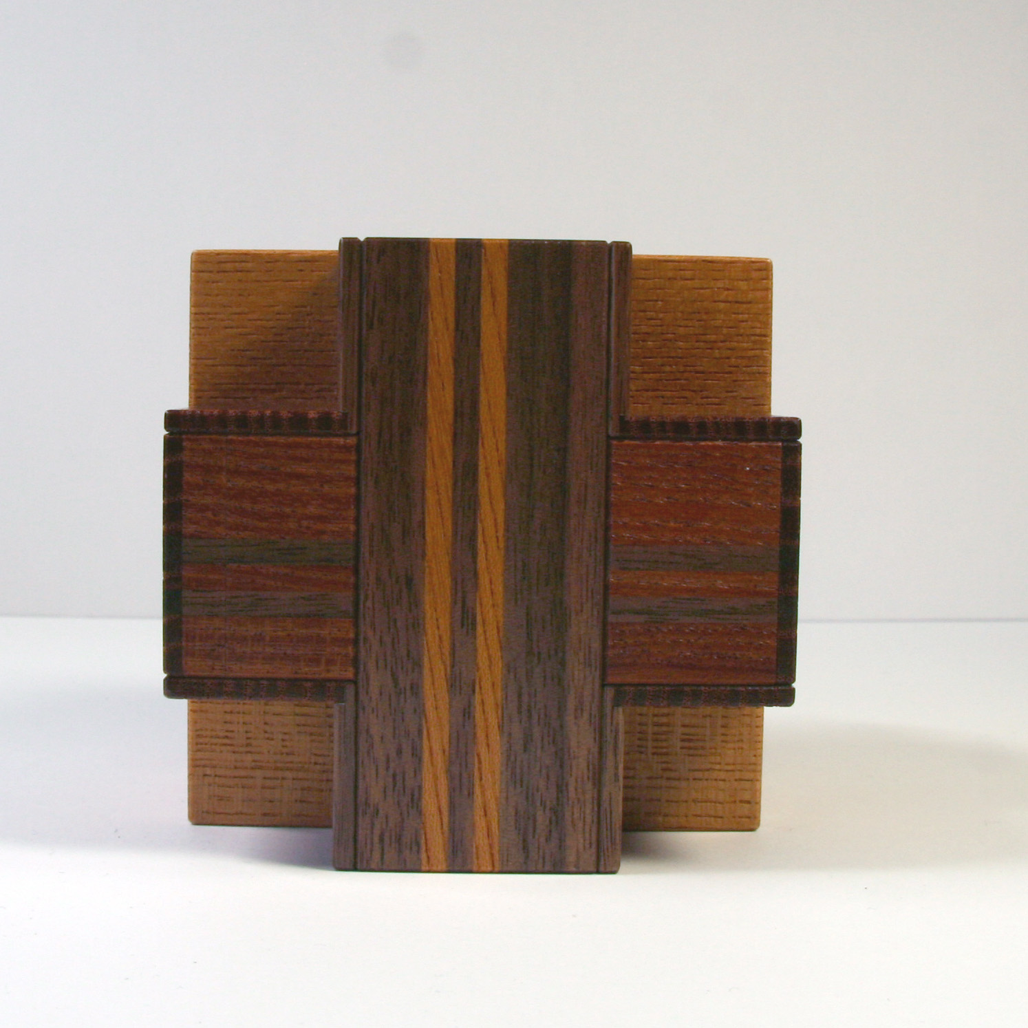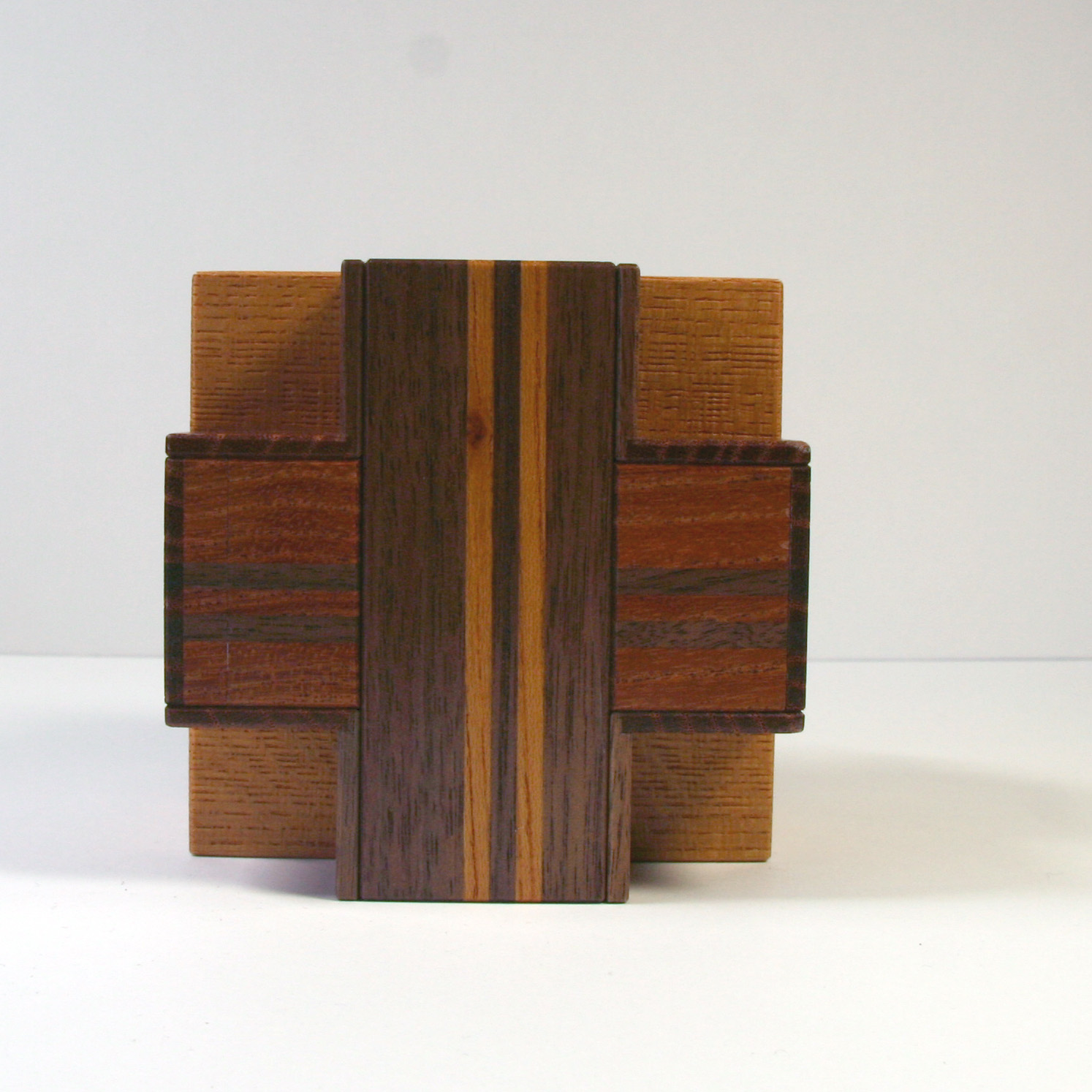 not a difficult solution, but it still took me a day to find it...which i suppose is more of a comment on me than the puzzle. made from cherry and walnut.(the puzzle, not me.) buyer pays shipping. shipment will be by USPS Priority Mail, insured for the full sale price. payment via PayPal only. ♫:  all puzzles in my collection have been kept out of sunlight, in a humidity-stable room, away from pets unless they can solve them, and in a...