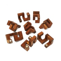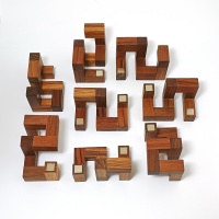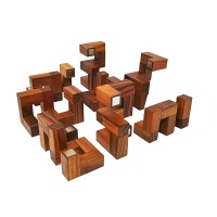 Hilbert is a handcrafted wooden put-together puzzle. The task is to arrange the pieces to form a stable cube.