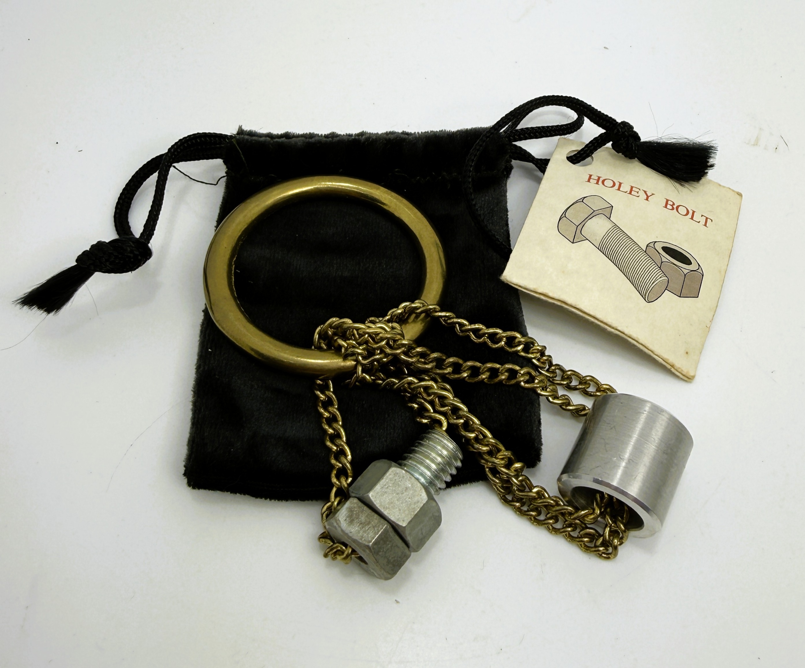 Condition: Brass ring is slightly tarnished with age. Card is a little brown with age and bent but not creased. See photo.