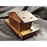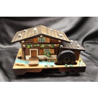 Vintage log cabin moving water wheel puzzle box.