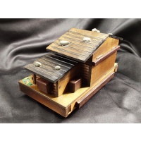 This is a sequential discovery puzzle box.Just like any house, it is locked. You need to find out how to open this little house. Once opened you need to find the treasureIt. It has custom paintings and the prize made by me. Don't let this pretty little house fool you. You will need more than your wit to open this house. It 6" wide 10" long 6" tall. It will take you 18 moves. To play the music and see what it had to hide.