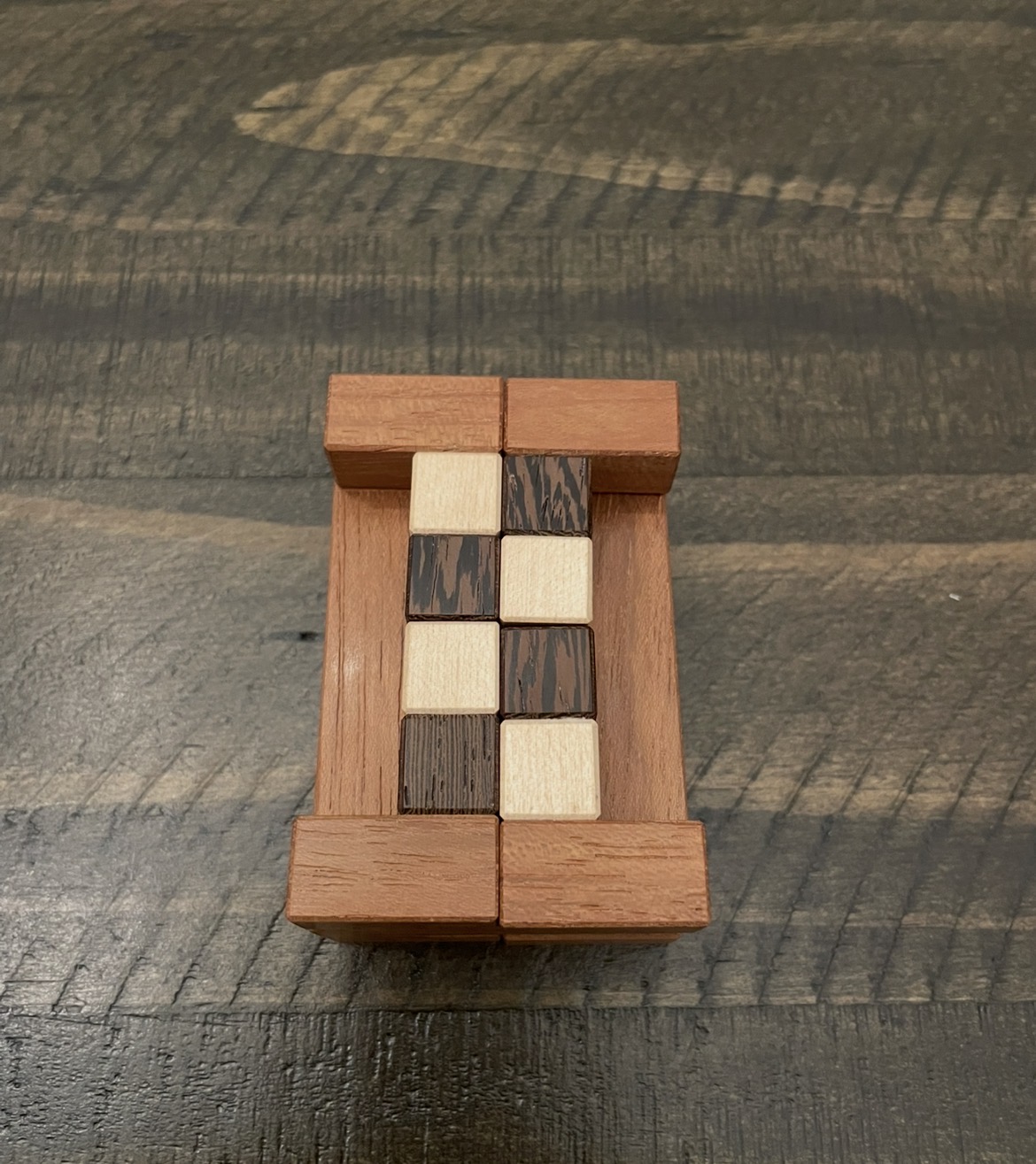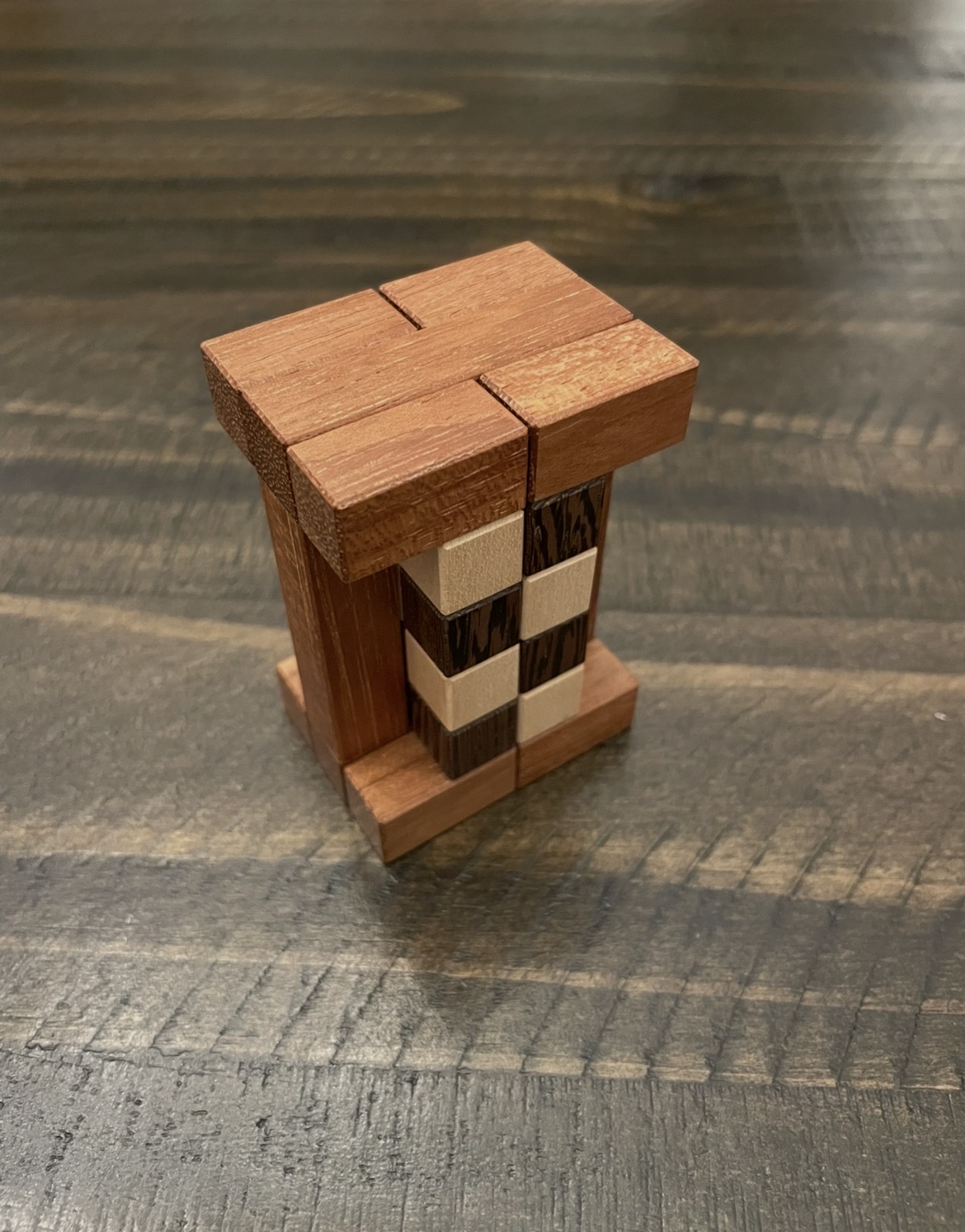 Designed by Alfons Eyckmans and crafted by Pelikan.Goal: Dissassemble and assemble the burr.Woods are Padauk, Wenge, and AshPerfect Condition. Comes from a smoke free home and properly stored.Will package with a collector in mind for shipping.*Buyer pays shipping costs and will be added at end of auction. I accept Friends and Family and Goods and Services payments. I understand the importance of G&S with buyer protection and some buyers are not able to utilize F&F.