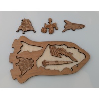 The objective is to fit any 4 of the 5 pieces into the main tray at one time.