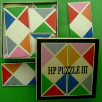 The most difficult puzzle I have designed. The puzzle consists of 15 pieces. Some pieces can be slid under the edge. Goal: Make the numbers 1 to 9 from left to right in the frame There are different possibilities. But there is only one possibility to slide to a magic square. The numbers are engraved in the pieces. Matrial Acrylic.If you carefully open the puzzle (press the bottom of the title square piece) you will see a 4. Remember that.