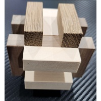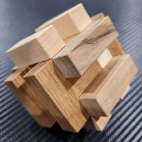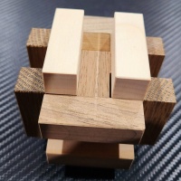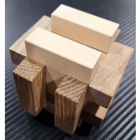 Double-Bar Cube, designed by Tom Jolly, manufactured by J. Dvorak & J. Svejkovsky for IPP 2008. Made from "3 hardwoods". Nice fit, no defects, has been in storage since 2008.