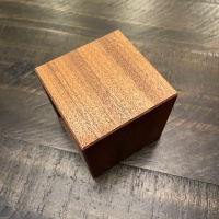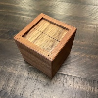 Originally released in 2008 with very low quantities, the Improved Cam Box redesigns the concept with a much trickier solution. At first, it appears to be a traditional sliding panel type box, but soon you reach a dead-end that will keep you stumped. I'm very happy with how this box turned out! The African Mahogany looks amazing with a slight sheen lacquer applied, and the Black Limba top and bottom each show a distinct and unique color pattern. 140 copies made for sale, each signed and dated. Great Condition. Comes from a smoke free home and properly stored. Will package with a collector in mind for shipping. *Buyer pays shipping costs and will be added at end of auction. I accept Friends and Family and Goods and Services payments. I understand the importance of G&S with buyer protection and some buyers are not able to utilize F&F.  |