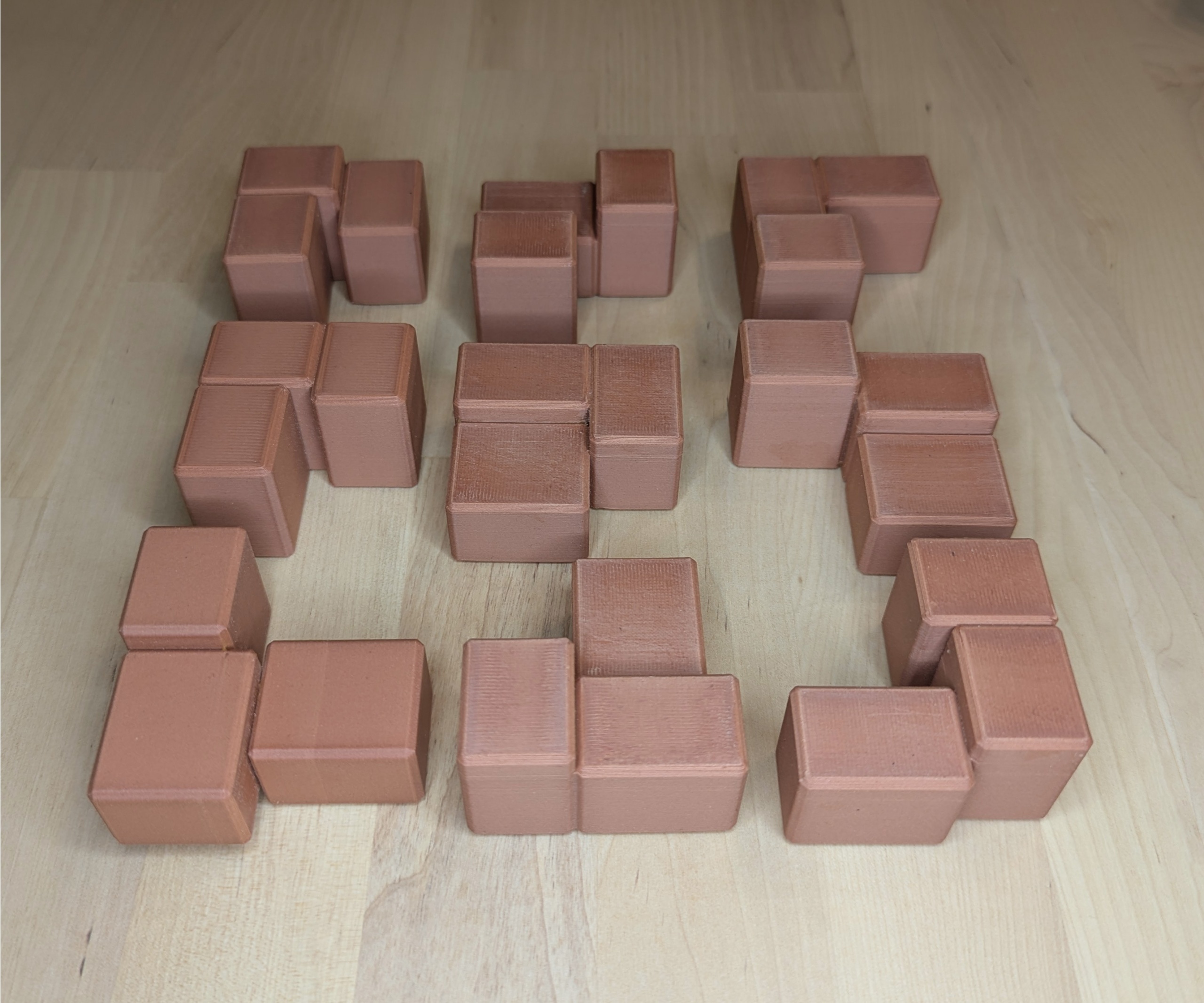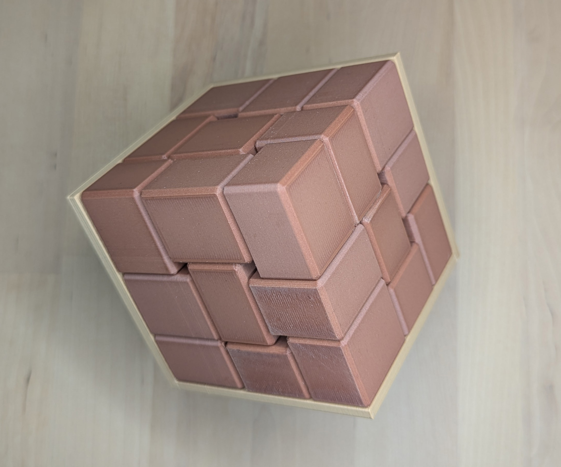 This puzzle is printed with two different Wood filaments and so has a pleasant woody look.