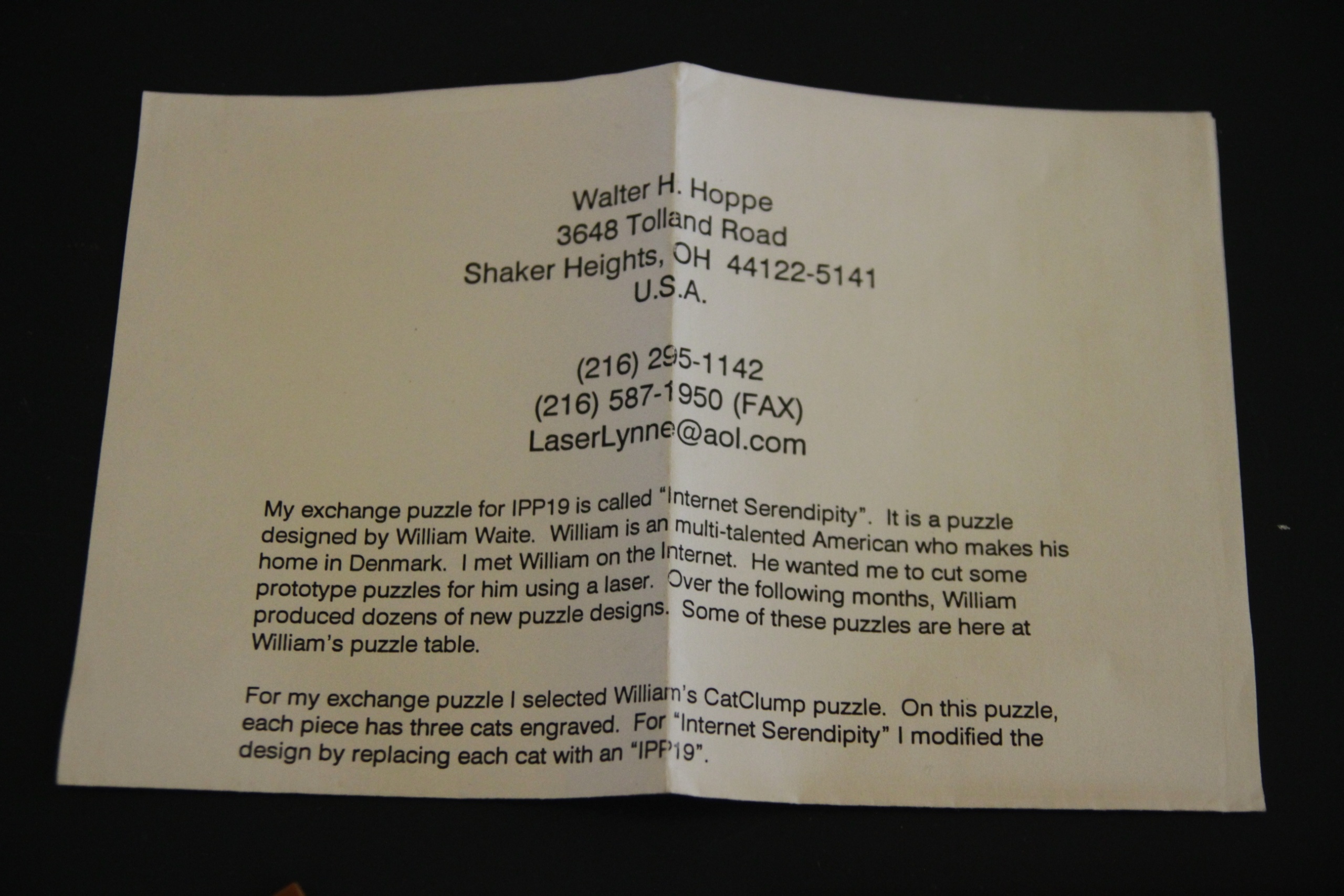 Presented by Will Strijbos, IPP 19 LondonDimensions ~180 x 100 x 8mmThe puzzle is located in the United Kingdom.Payments can be made through PayPal (Friends & Family preferred).Buyer to pay shipping, calculated after auction.