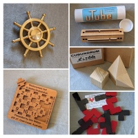 maple, MDF 6 piece packing puzzle with curious geometry, 3D assembly, design by John Flower