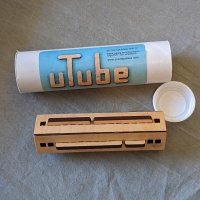 lasercut cherry, 11 piece sliding block puzzle, unusual "+" shaped pieces make for interesting moves!