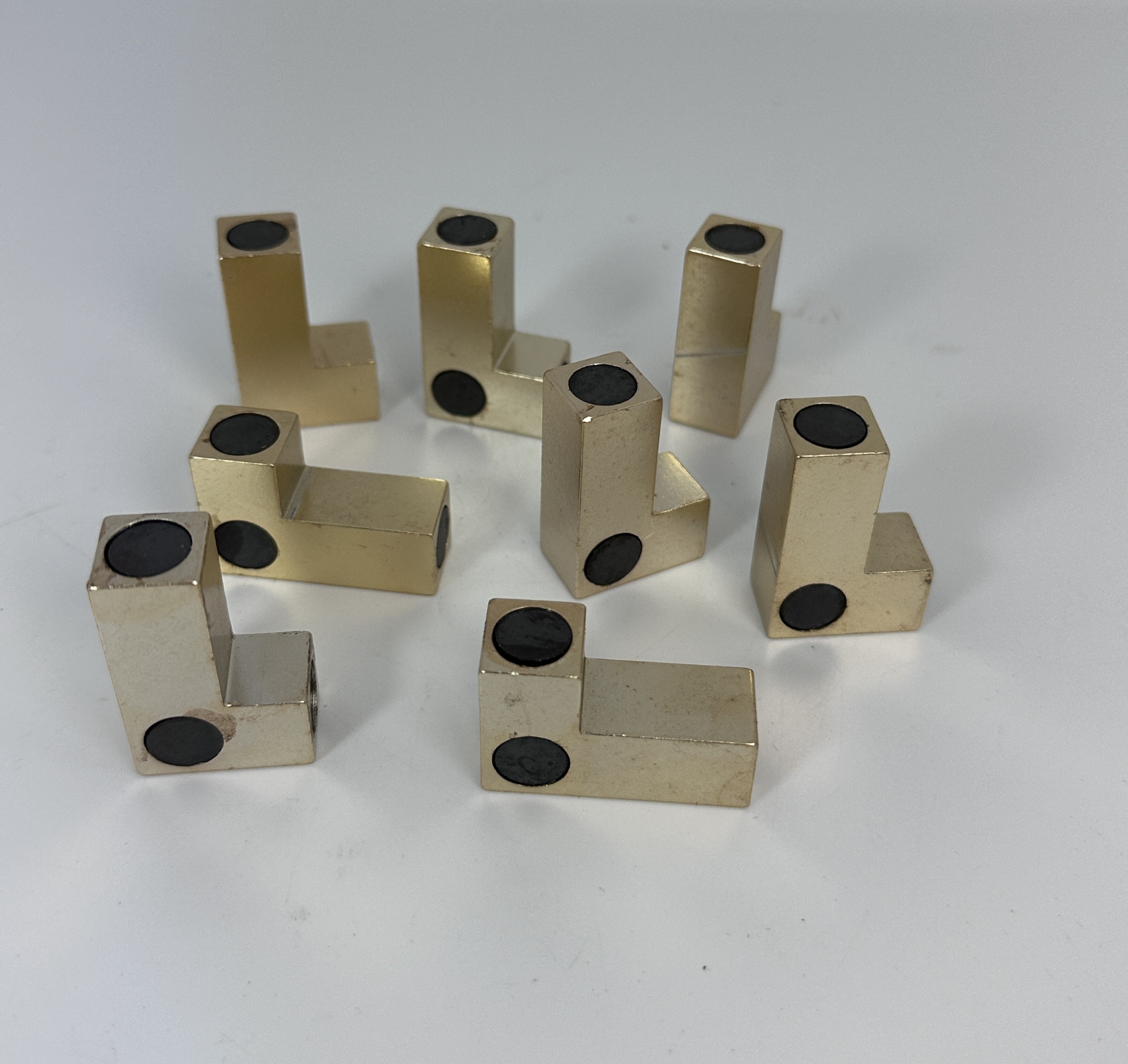 Condition: Reasonable.  The pieces look a bit roughly made and some magnets are not sitting perfectly flush. The plating is not perfect either. But that is probably the original manufacture. There is no corrosion on the magnets.  There’s no packaging with the puzzle and no solution.  I did assemble it so we know all the pieces are there and it works.